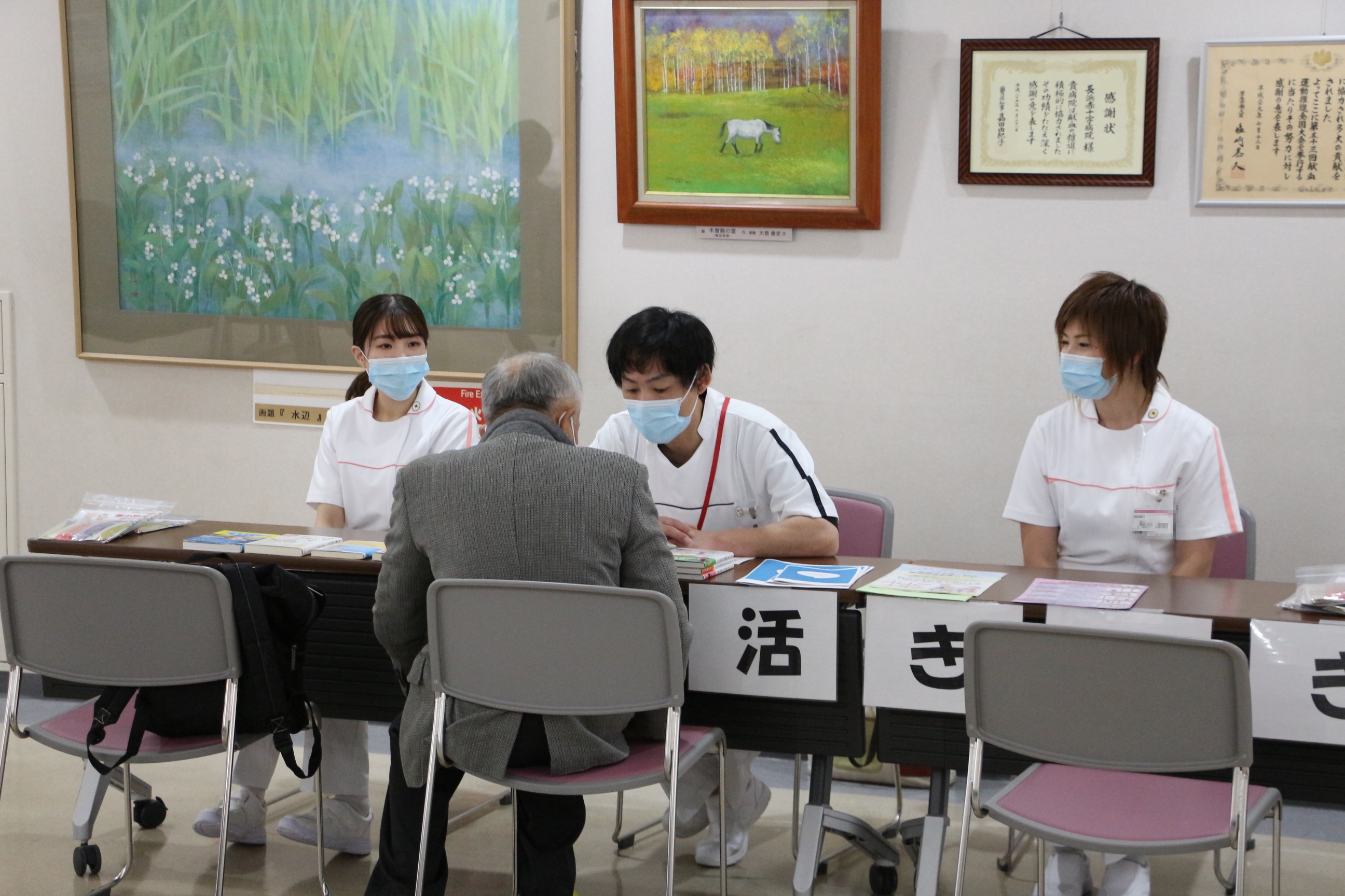 1階エントランスホールにて、5月10日に開催いたしました。イベントコーナーとして、看護師による健康チェック(血圧・体脂肪測定など)や健康相談、生き活き相談と題して、薬剤師によるお薬相談・管理栄養士による栄養相談、認知症・介護相談などを行いました。また、実演ブースでは、手洗いチェッカーを使用し、自身の日頃の感染対策について振り返り、正しい手洗い方法について再認識していただける良い機会になりました!