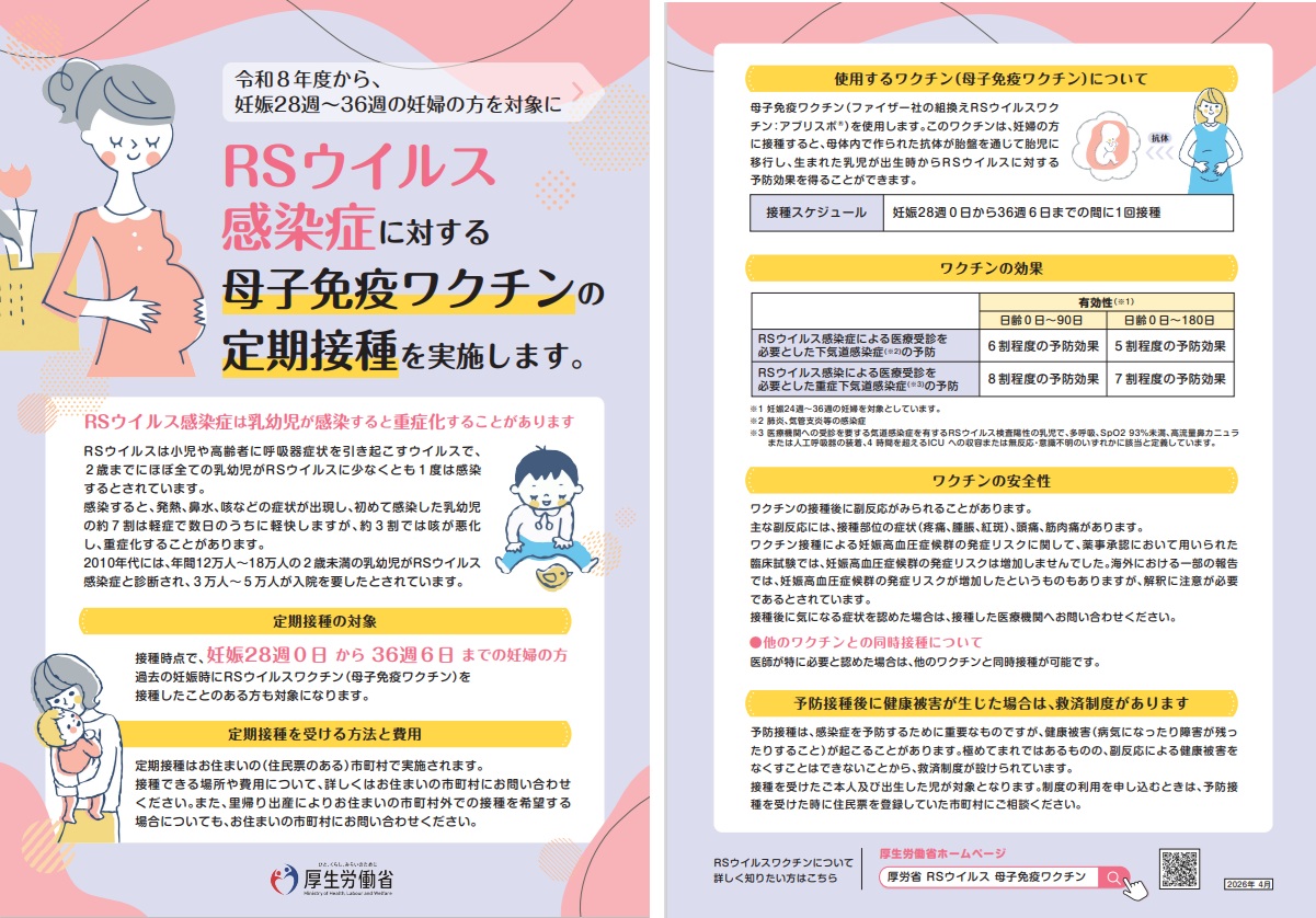 妊婦の方に対するRSウイルスワクチンの定期接種について